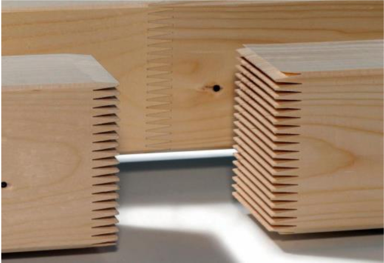 Полуавтоматическая линия сращивания древесины по длине модель INFINITY 150 AUTO применяется для сращивания короткомерных брусков и ламелей длиной от 150 мм до 850 мм на зубчатое клеевое соединение с торцовкой готовых заготовок в заданный размер. Максимальный размер срощенной заготовки – не ограничен. Линия сращивания позволяет формировать различные зубчатые клеевые соединения в зависимости от расположения шипов по отношению к пласти склеиваемых заготовок и формировать заплечики по необходимости