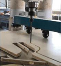 Для раскроя используется фреза, которая имеет 2 опоры. Такой способ крепления исключает вибрации и позволяет раскраивать материал высотой до 150 мм с высокой скоростью и точностью.
